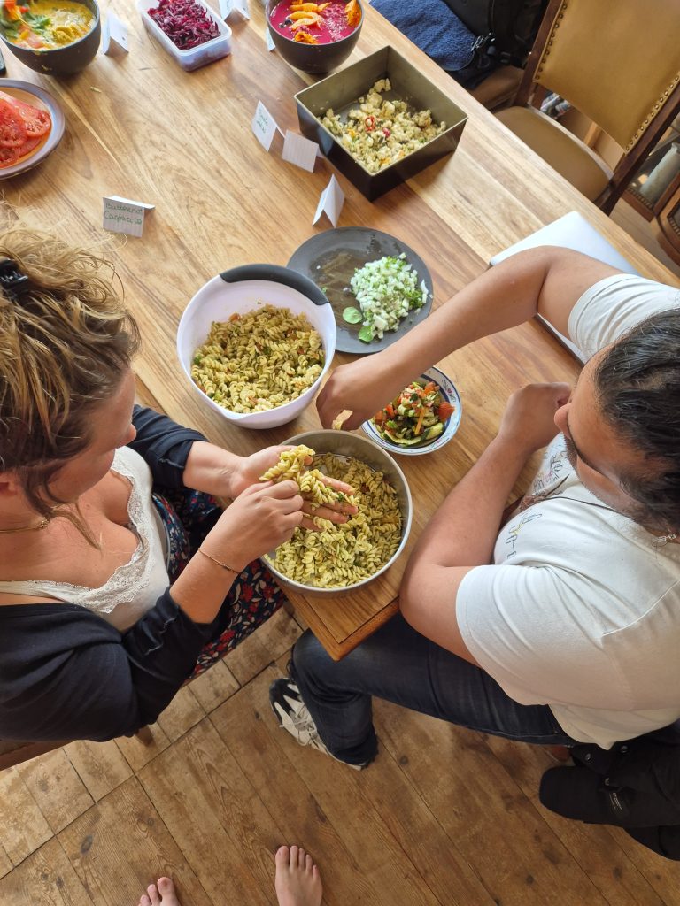 The next day, while another activity was planned, a few of us—Sergio, Marion, Stefano, Pedro, and I—remained behind. The conversation turned to what could be done with the leftovers. What started as a practical concern soon became something more: an invitation to engage, create, and connect in a way that had little to do with words and everything to do with shared experience.