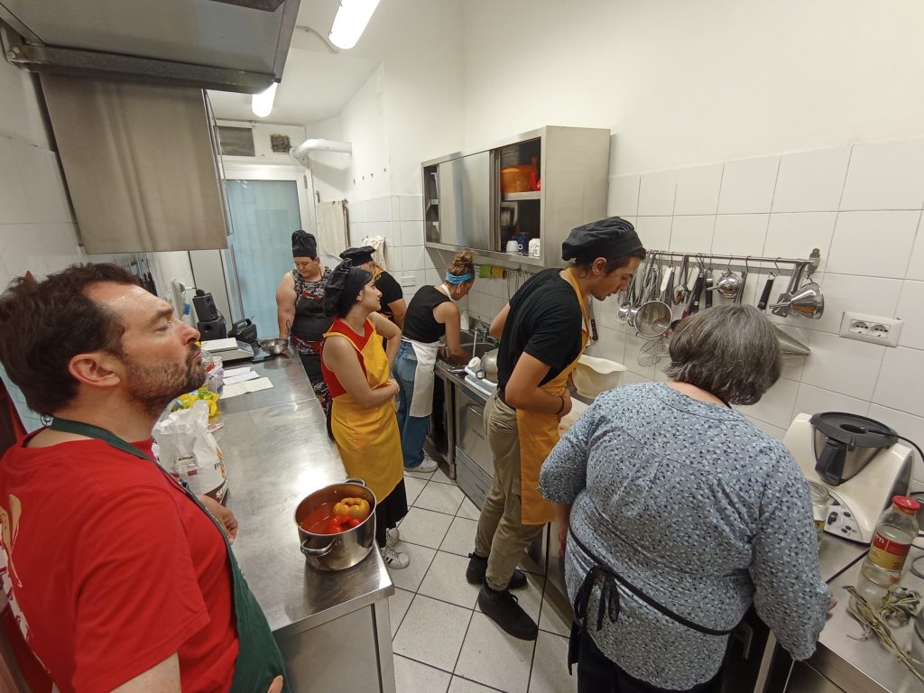 We return to the countryside, and we taste a lunch prepared by our friends at Agricoop. Then the groups separate, in one, the “performers,” and in the other, those preparing ingredients on skewers.
